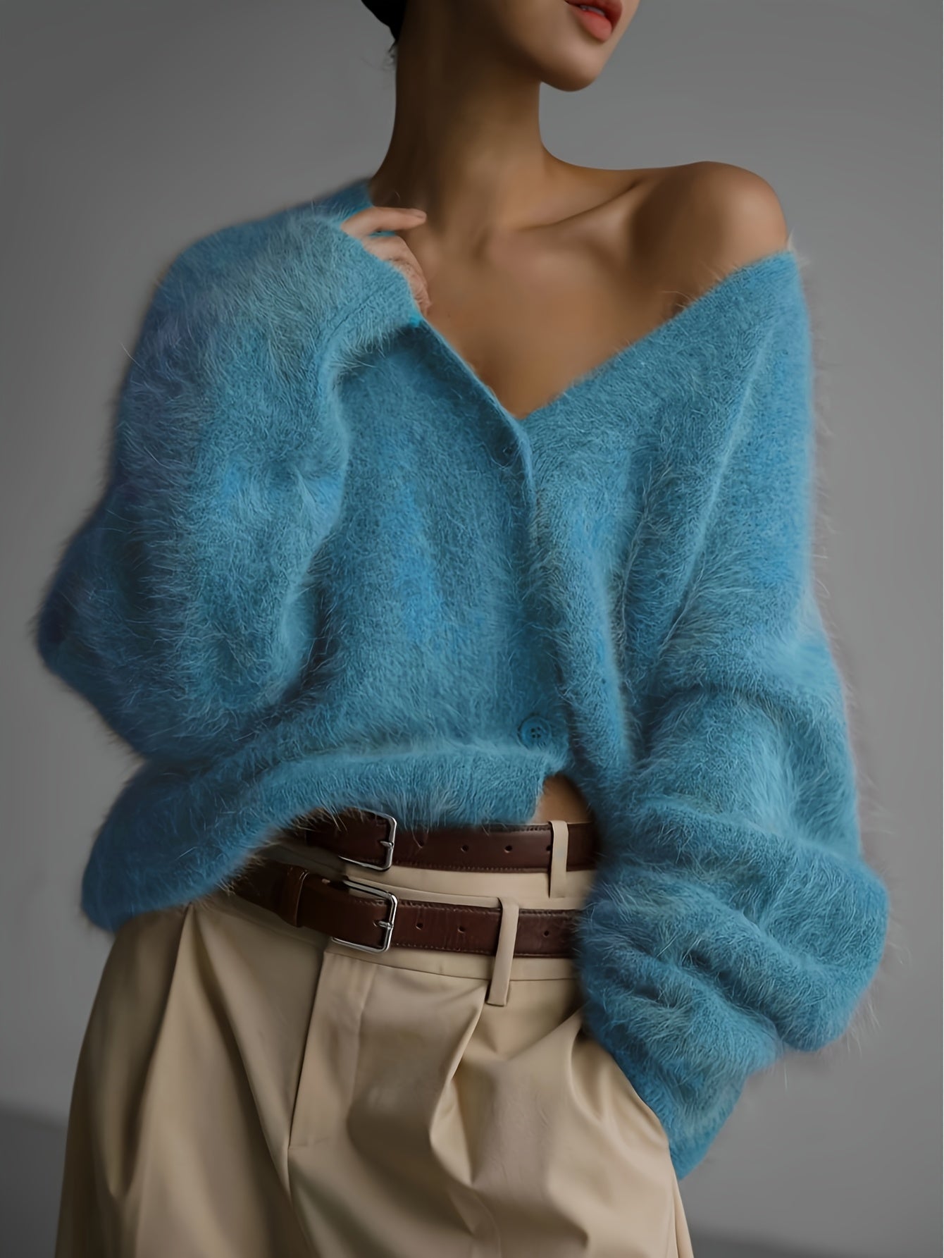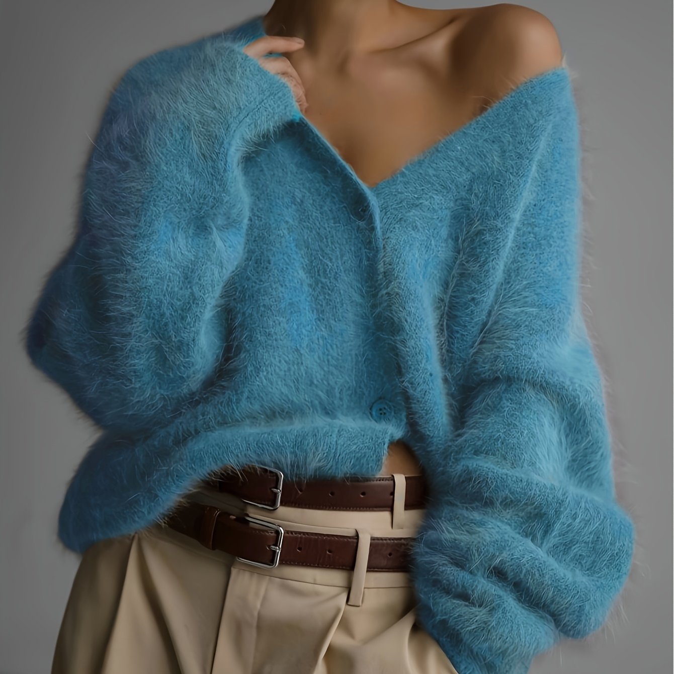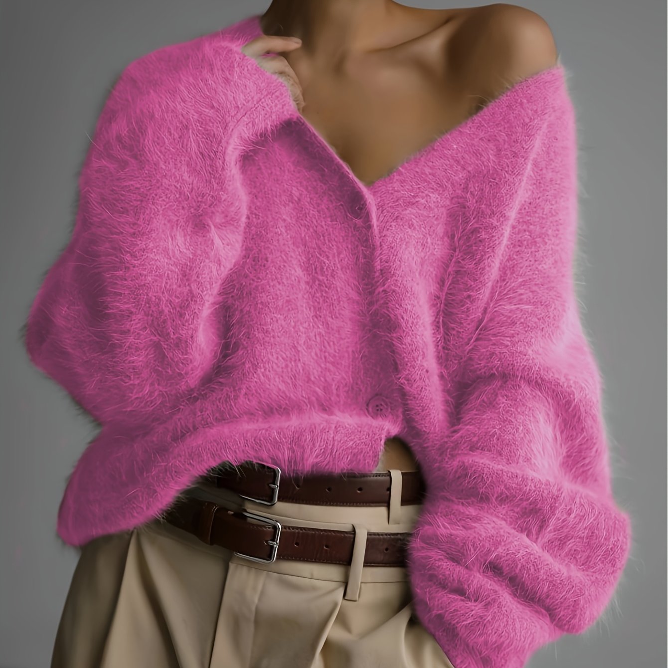 • Timeless Design: The V-neckline and oversized fit make this cardigan a versatile addition to any wardrobe.