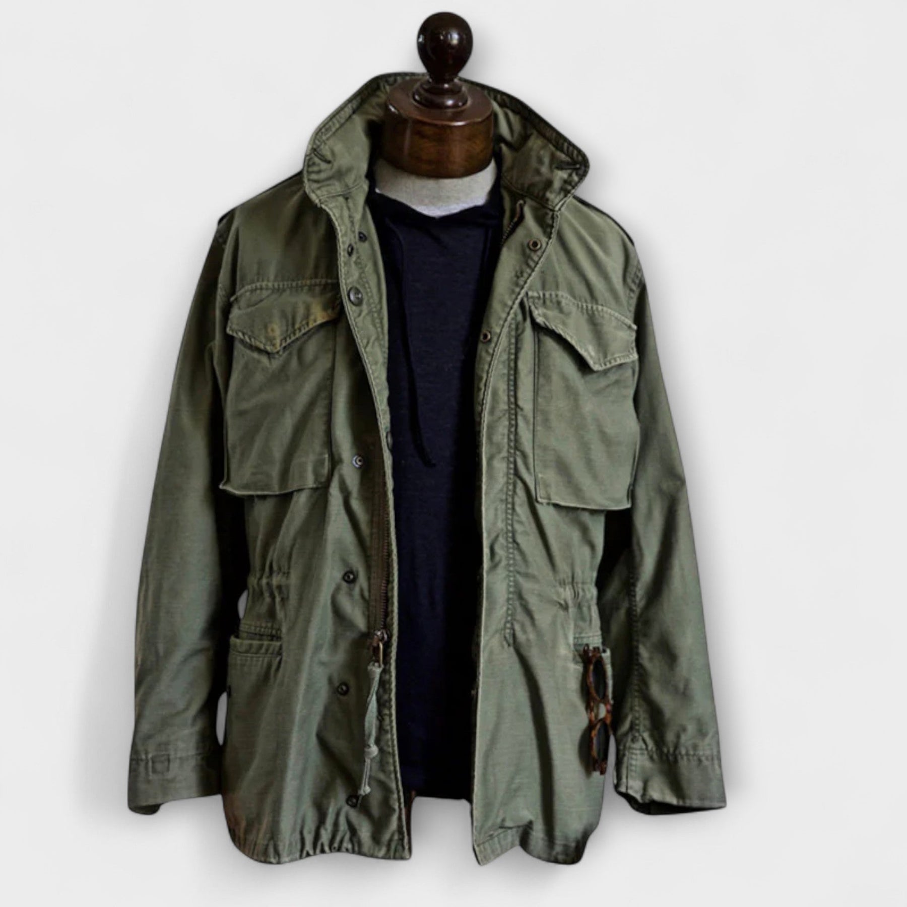 This field jacket features a practical four-pocket design with two flap pockets on the chest and two larger pockets at the waist. The zip and snap-button front offers secure closure, while adjustable waist drawstrings and a stand-up collar provide both shape and added protection. Ideal for layering over casual outfits with ease.